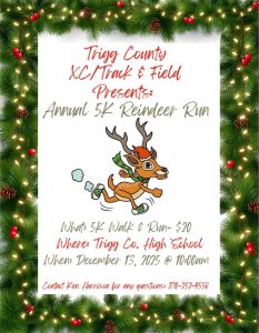 Annual 5K Reindeer Run presented by Trigg County XC/Track & Field �� signs up are on the day of. No pre-reg