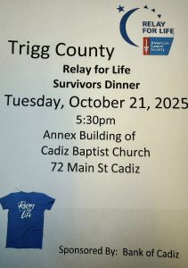 Bank of Cadiz & Trust will be hosting the 28th Annual Relay for Life Survivors Dinner.