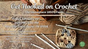 Learn the basics of Crochet on Friday, February 20th, 1-3pm at the Homeplace.