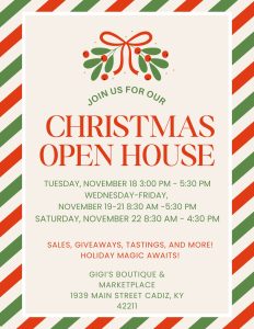 🎄Join us for a festive Christmas Open House at Gigi’s Boutique and Marketplace as we celebrate three wonderful years of serving our community!