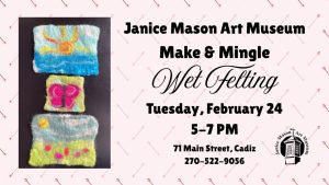 Mackenzie Stone will be teaching how to use the Wet Felting process to create art.