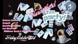 Grab a seat at the long table, drink some Mad Hatter Punch or Long Island Tea, beat your friends at a round of croquet, dance to the smooth musical stylings of Wildflower Honey & the Hot Biscuits, paint the roses red, yell “off with her head!” whenever someone upsets you, and…obviously… grab a clean cup and move down!!